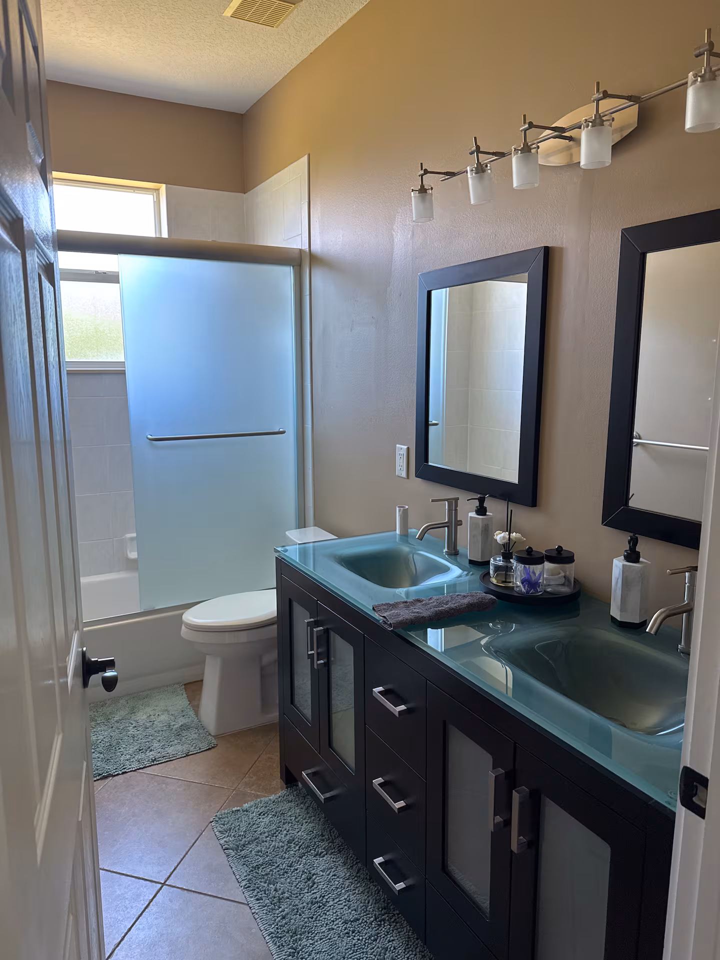 The Master Suite boasts a King-size bed with a plush Saatva mattress, ensuring a restful night’s sleep. The en-suite bathroom offers a large jet tub and a spacious, two-person walk-in shower, complemented by his-and-hers walk-in closets for ample storage.